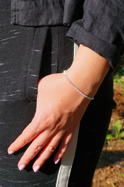 צמיד איכותי בציפוי כסף, משובץ זרקוני זכוכית. מותאם אישית לגודל היד ב-2 גדלים שונים.