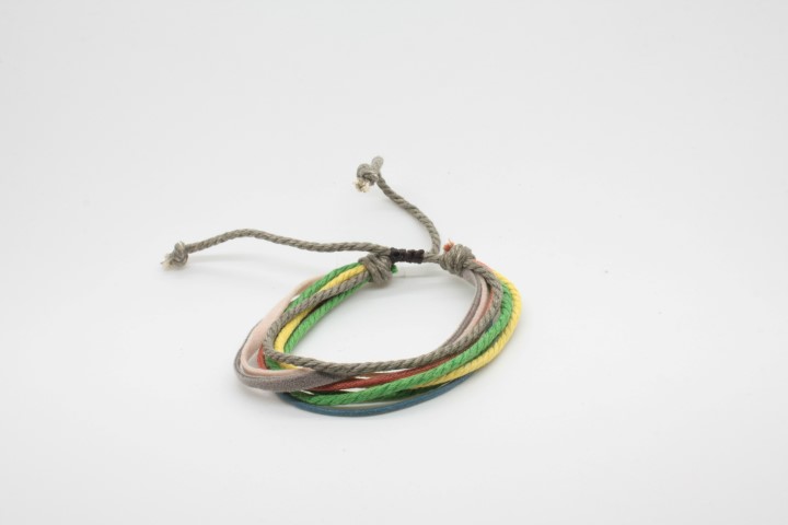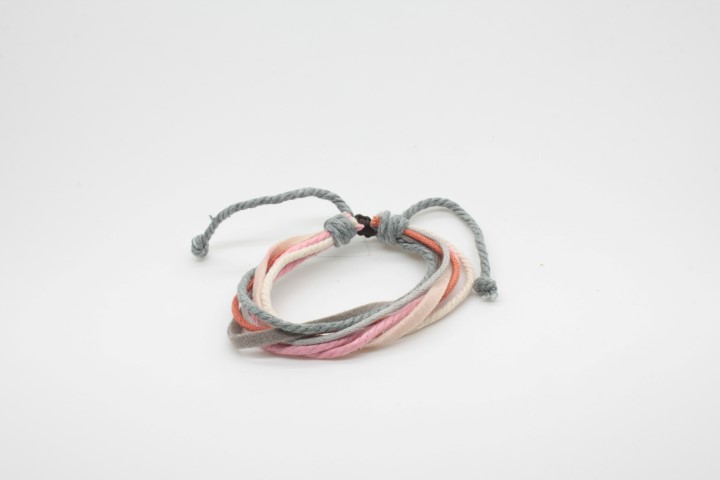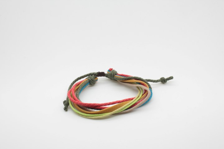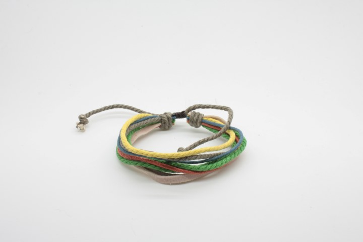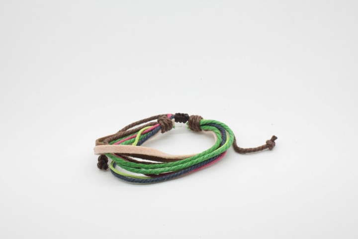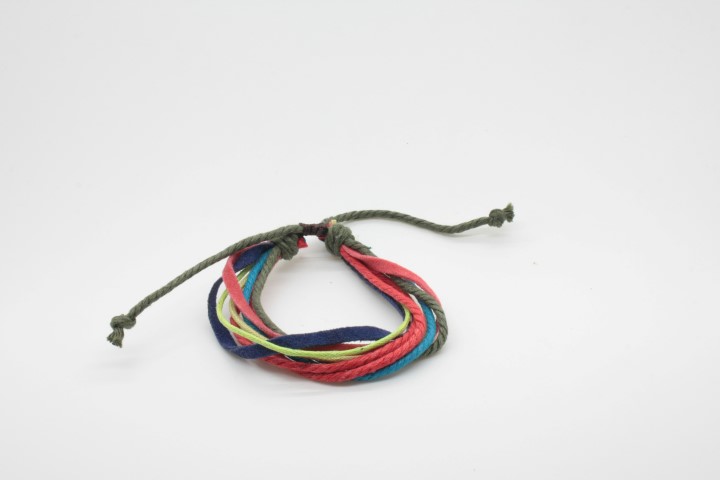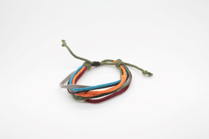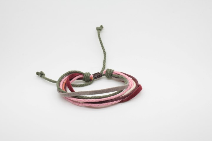צמיד עבודת יד מחוטי עור וחוטי כותנה.
