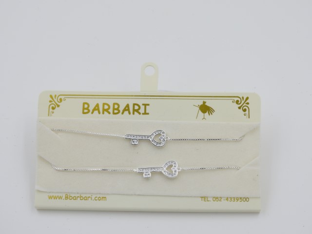 צמיד גולדפילד איכותי בציפוי זהב לבן, משובץ זרקוני זכוכית. תליון מדגם מפתח הלב. מותאם אישית לגודל היד.
