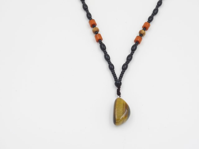 שרשרת עבודת יד בשילוב חרוזי זכוכית+תליון אבן טייגר איי
