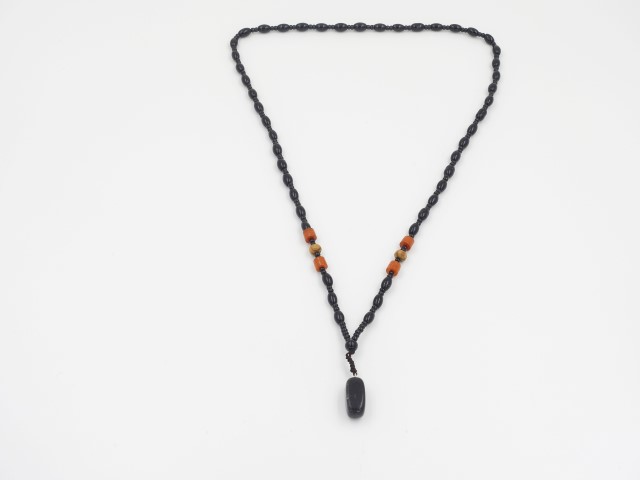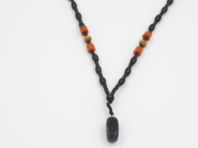 שרשרת עבודת יד בשילוב חרוזי זכוכית+תליון אבן בלאק אוניקס