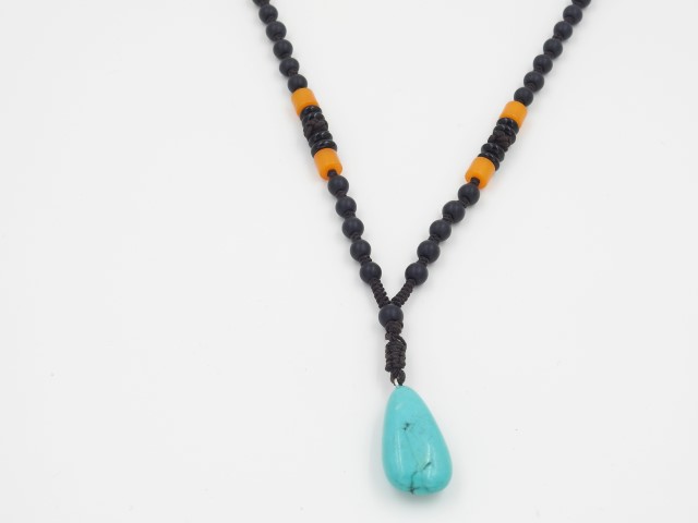 שרשרת עבודת יד בשילוב חרוזי זכוכית+תליון אבן טורקיז