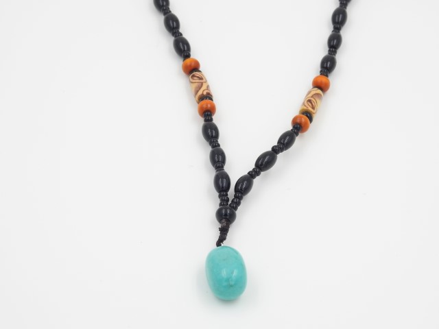 שרשרת עבודת יד בשילוב חרוזי זכוכית+תליון אבן טורקיז